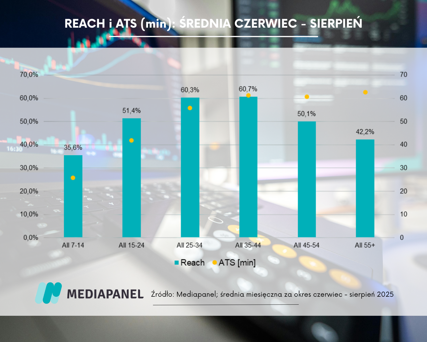 To kluczowe roczniki dla branży finansowej: użytkownicy aktywni zawodowo, w okresie intensywnych decyzji finansowych (kredyty, inwestycje, zakupy rodzinne), oswojeni z bankowością mobilną i płatnościami bezgotówkowymi.