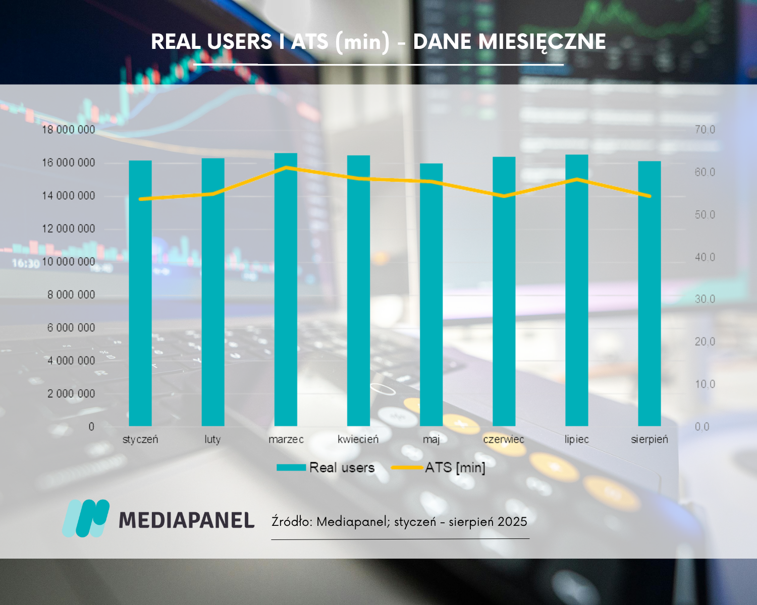 Wakacje zwykle mieszają w naszych rytuałach: więcej wyjazdów, mniej biurka, więcej „tu i teraz”. W przypadku aplikacji finansowych ten scenariusz się nie sprawdził. Dane z miesięcy styczeń–sierpień 2025 pokazują, że kategoria „usługi finansowe” utrzymała zarówno skalę korzystania, jak i intensywność użycia bez istotnych wahań sezonowych.