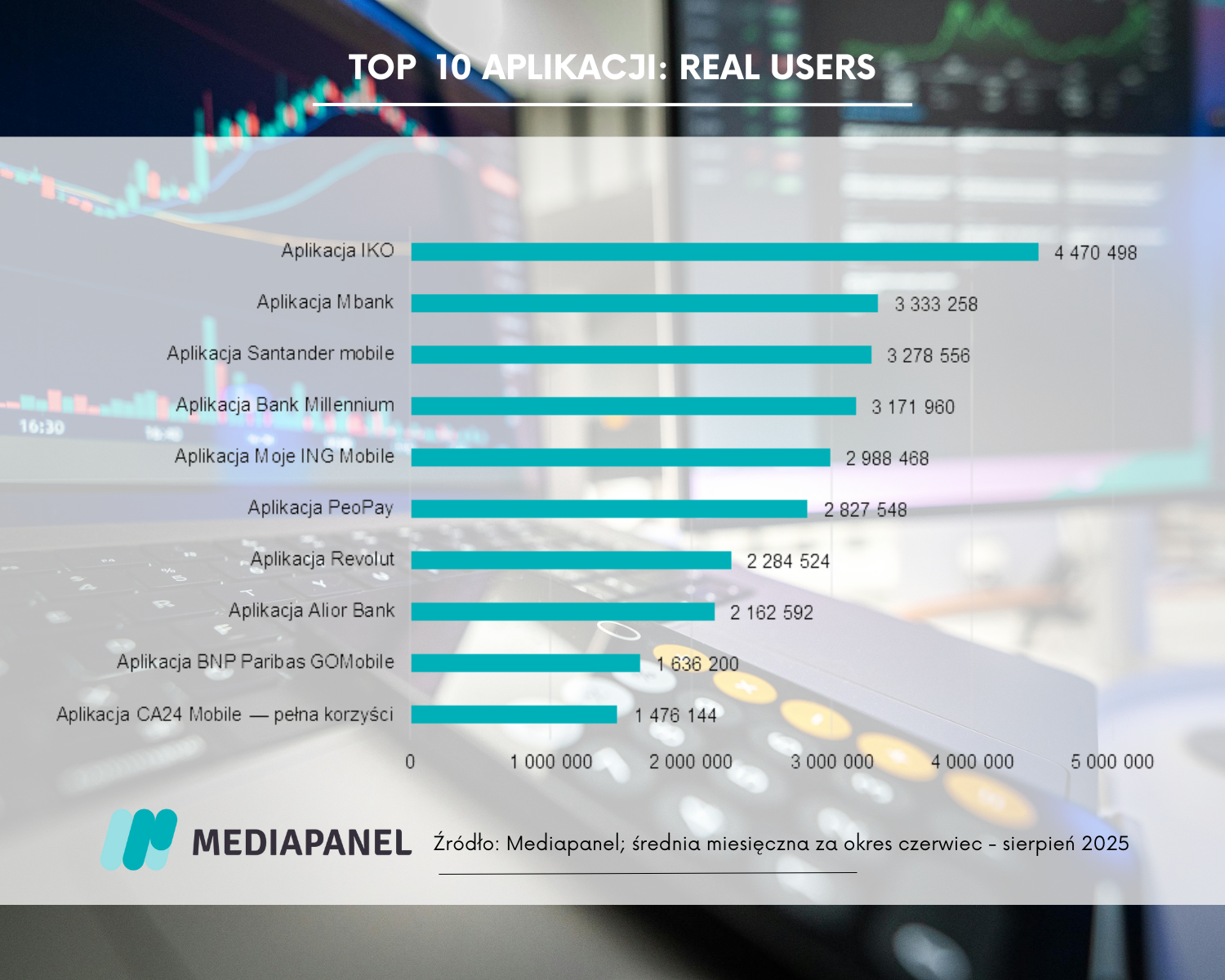 W okresie wakacyjnym (czerwiec – sierpień 2025) średnio miesięcznie z aplikacji tych korzystało 16,3 mln Realnych Użytkowników, spędzając w nich przeciętnie 55,8 minuty na osobę. Innymi słowy: bank w kieszeni to nawyk, który działa równie dobrze w biurze, na plaży, jak i na górskim szlaku.