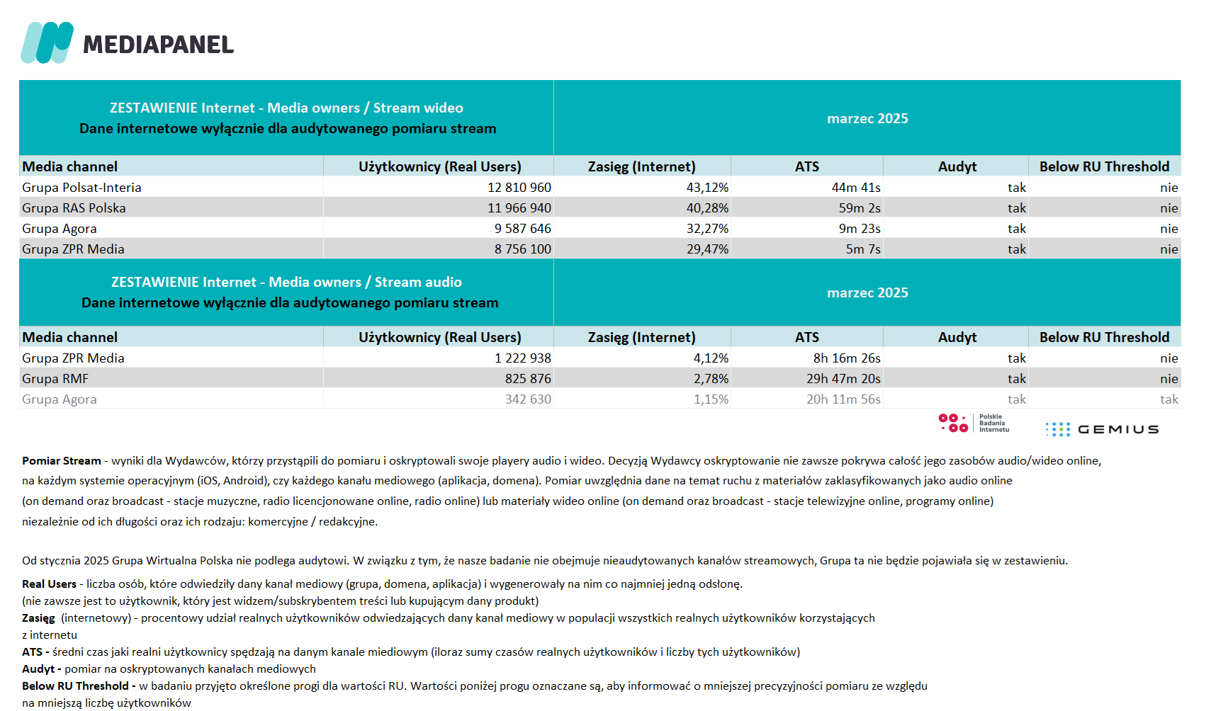 Wyniki badania Mediapanel za marzec 2025 - Internet