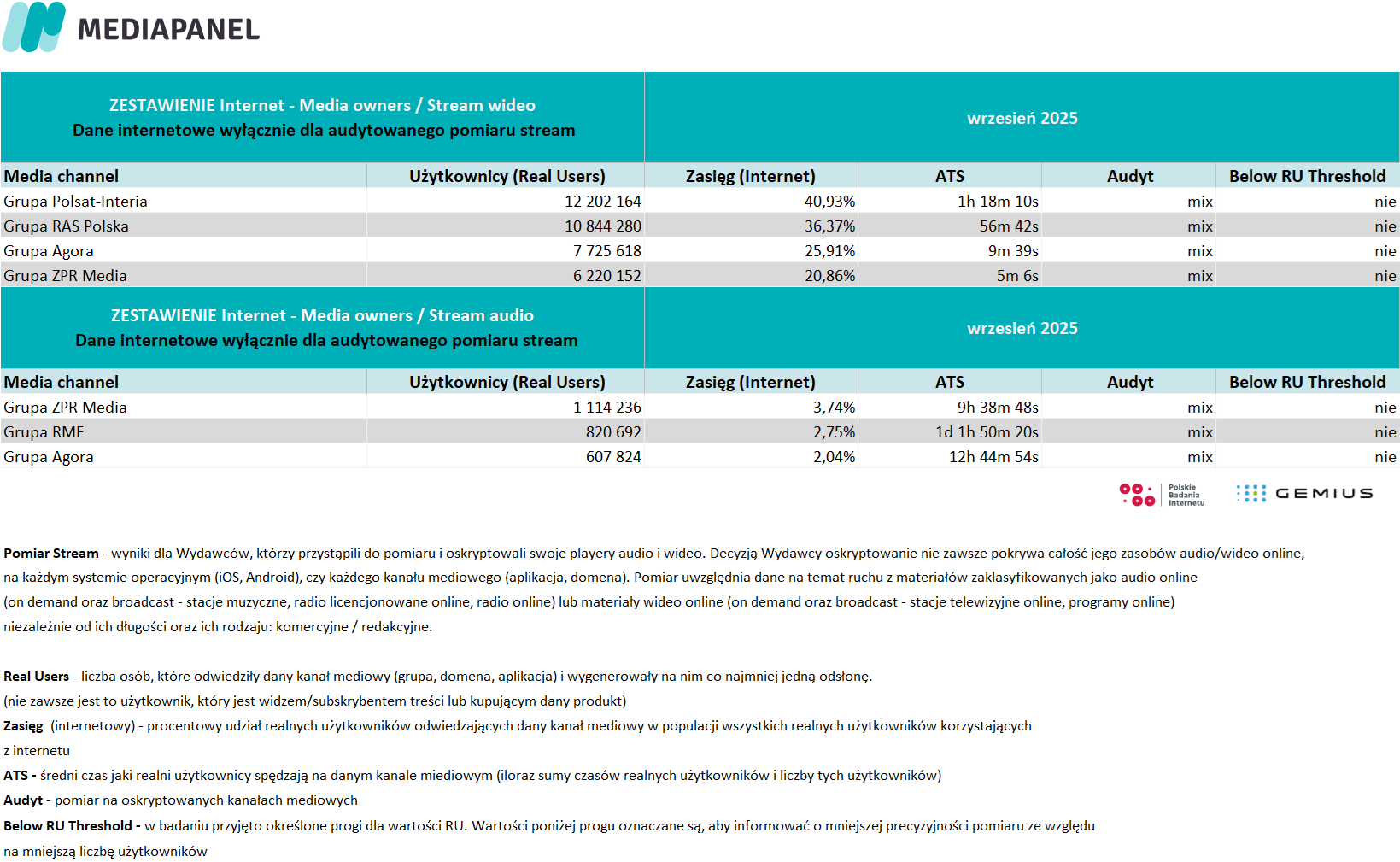 Poniżej prezentujemy szczegółowe zagregowane miesięczne dane pochodzące z badania internetu: rankingi wydawców i witryn internetowych oraz aplikacji. Prezentujemy również zestawienie audytowanych playerów audio i wideo – ich wyniki pokazujemy w agregacji do grup mediowych, biorących udział w badaniu.